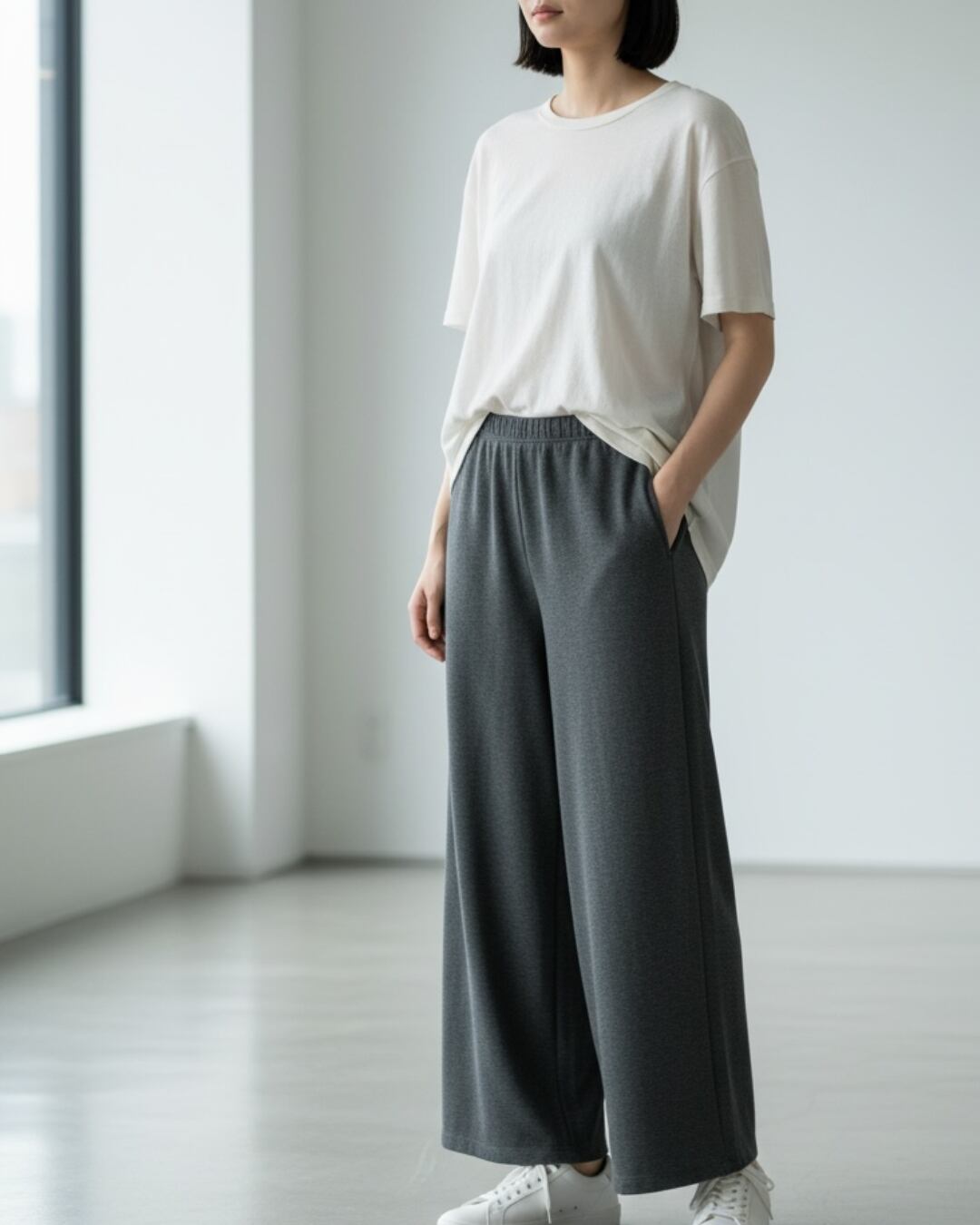 動きやすさと大人のきれい見えを両立した、万能ワイドパンツが登場。