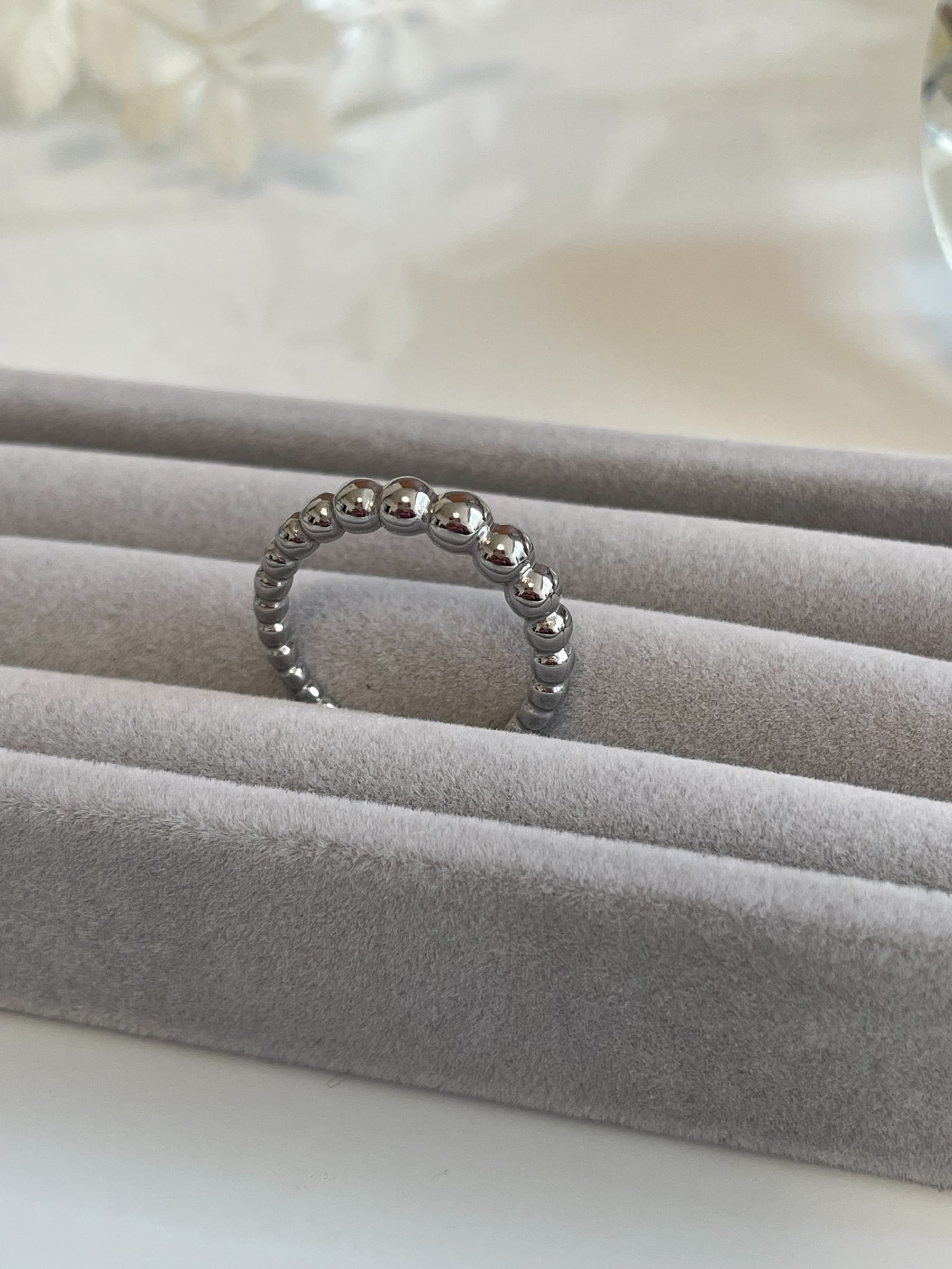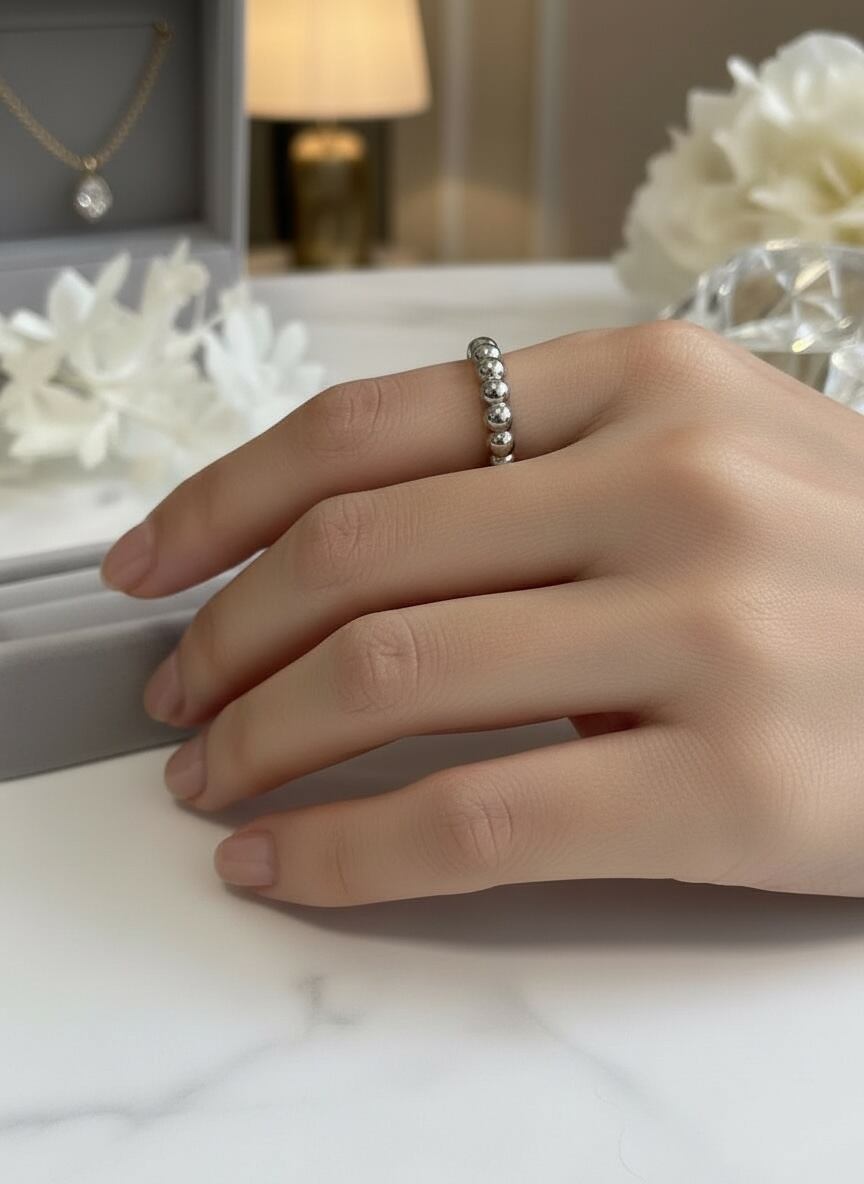 小さな丸が連なるデザインで、手元をさりげなく華やかに見せてくれます。