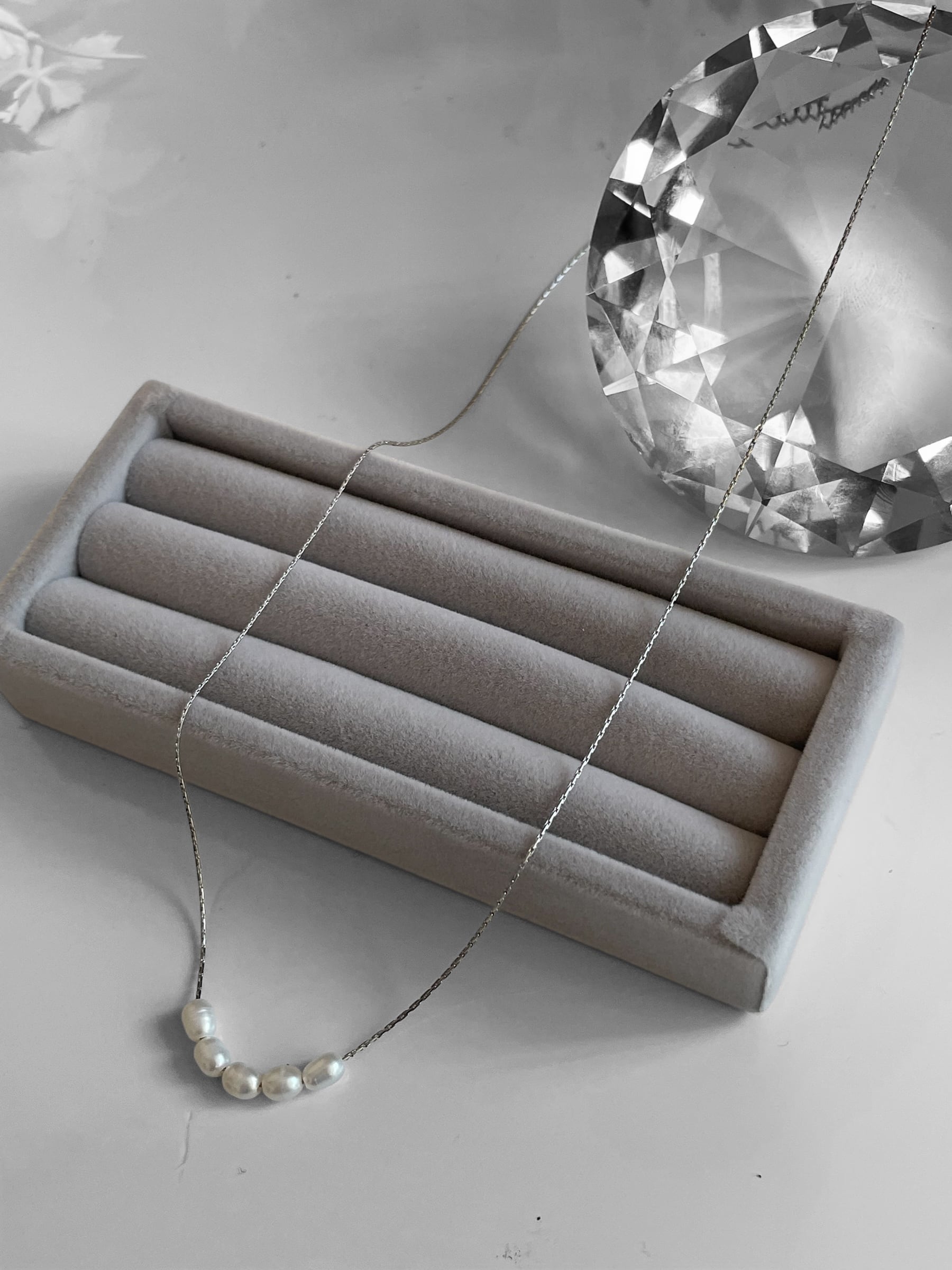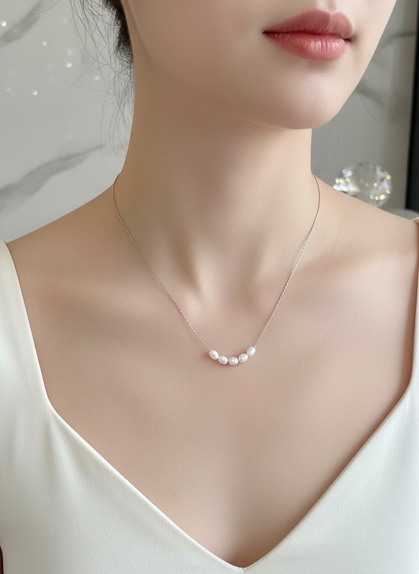 小粒のパールモチーフを並べた、上品でシンプルなネックレス。