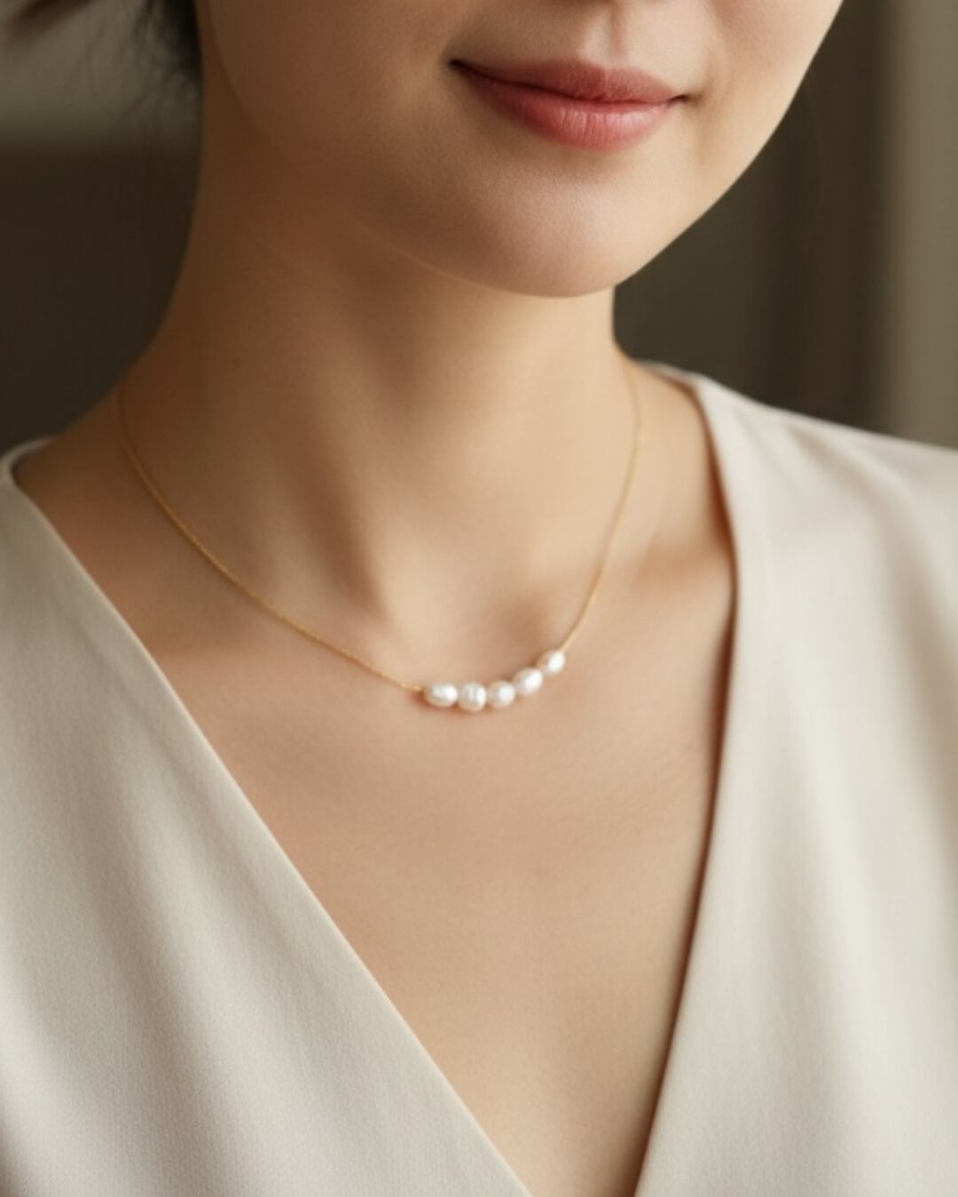 小粒のパールモチーフを並べた、上品でシンプルなネックレス。