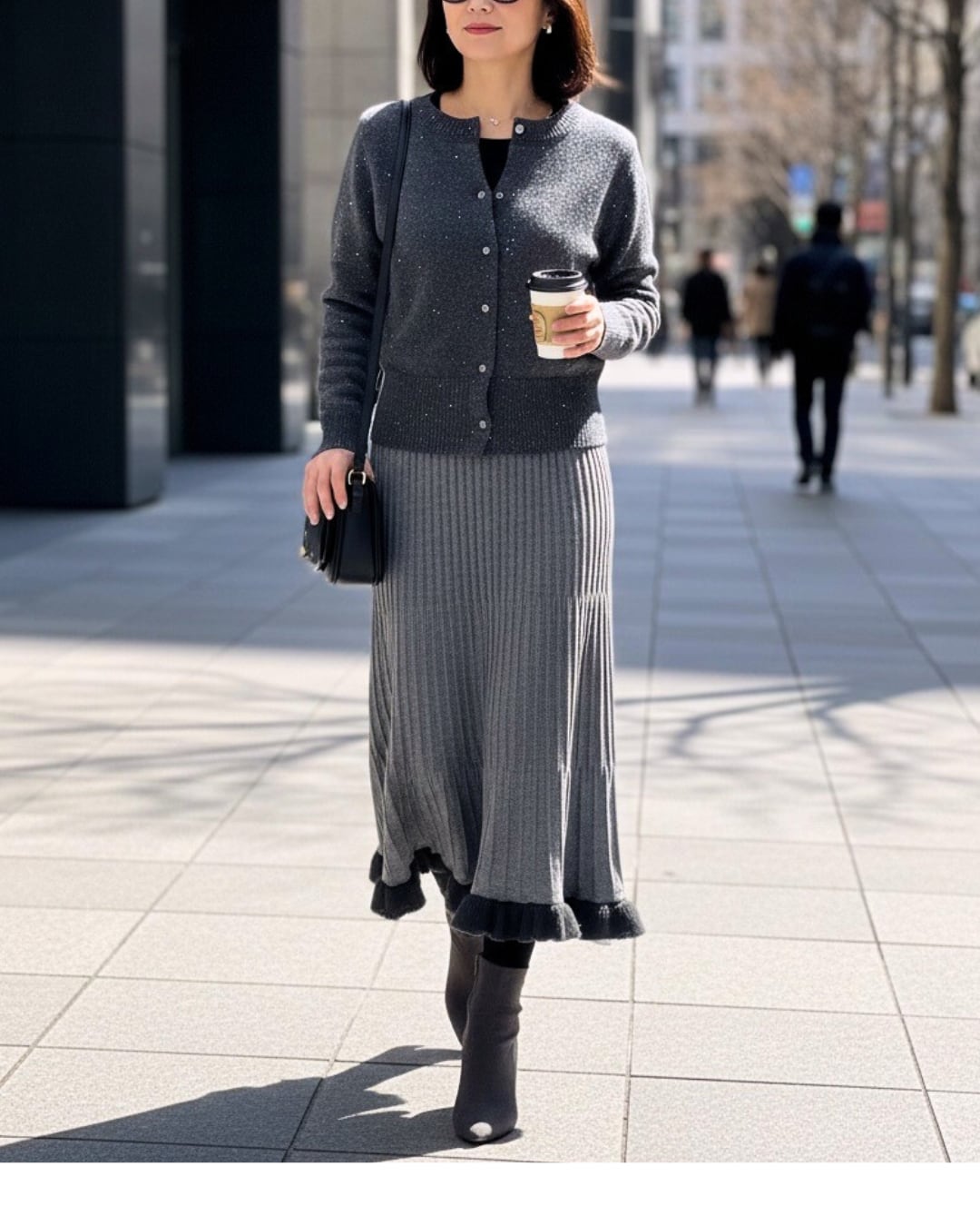 カーディガンはベーシックなシルエットで着回し力抜群。