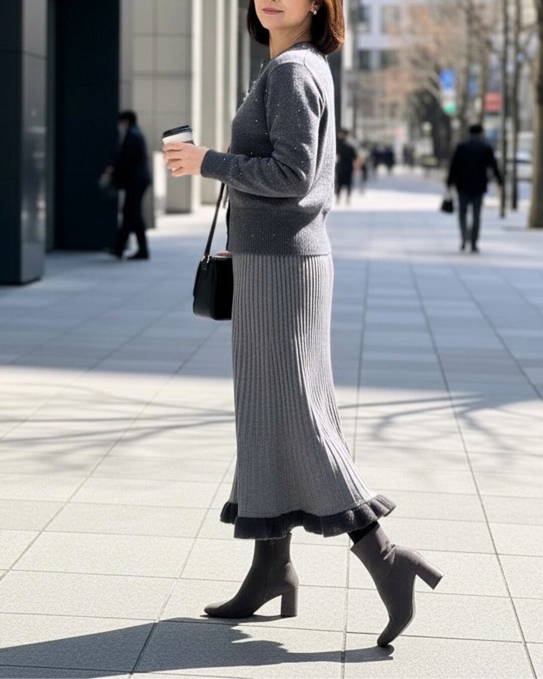 歩くたびに揺れる裾が女性らしさを引き立てます。