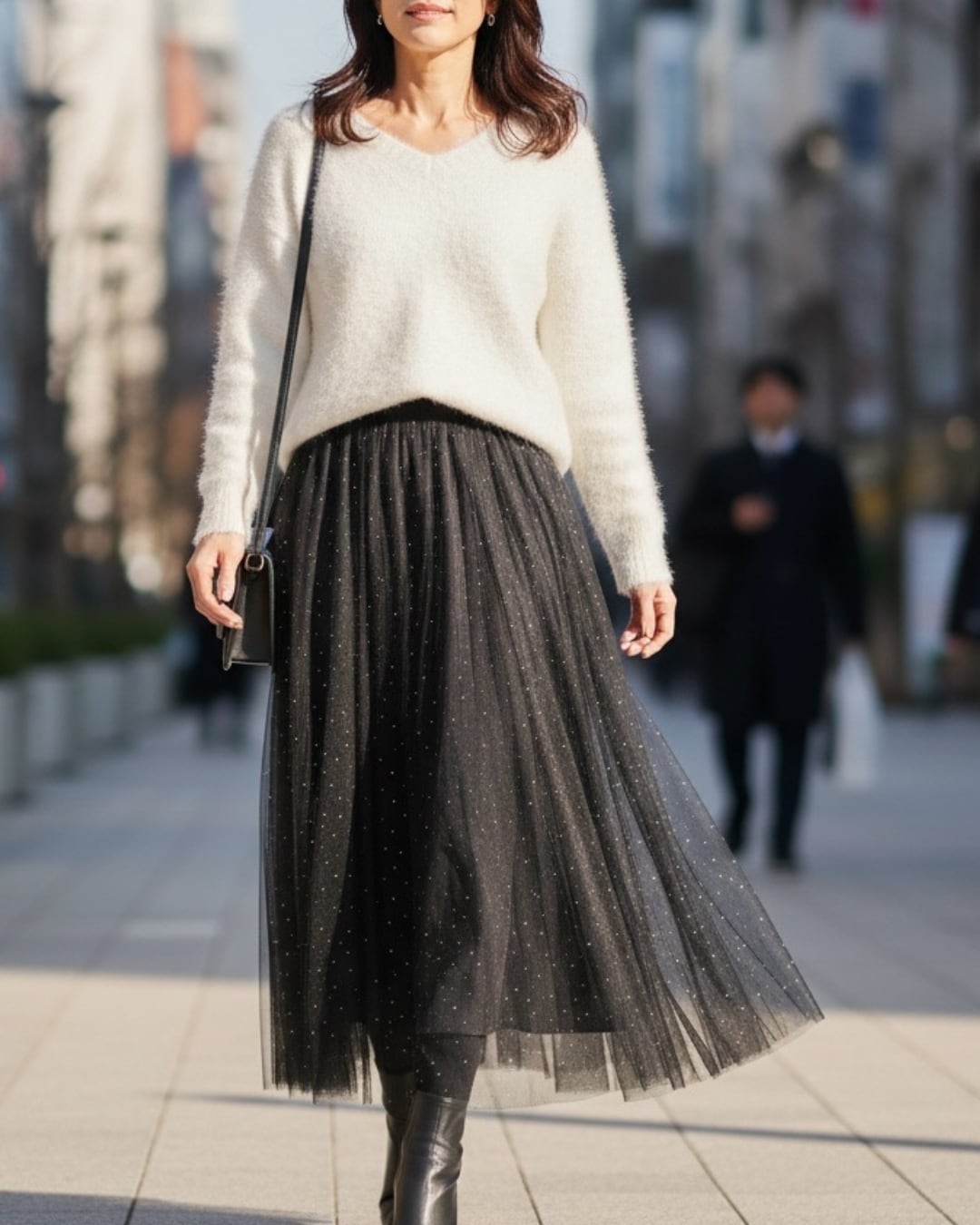 ストーンチュールスカート × ホールガーメントニットセットアップ
